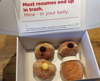 Результат? Из 40 компаний куда он "доставил" резюме с пончиками его уже пригласили на собеседование 10 из них.