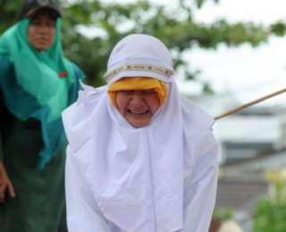 Она была одной из 13 приговоренных к публичному наказанию женщин в возрасте от 21 до 30 лет в провинции Ачех, Индонезия.