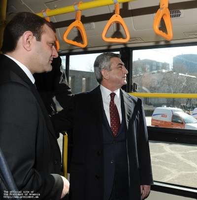 Ну наконец - то ))) Президент Армении Серж Саргсян ознакомился в субботу с новой партией китайских автобусов и прокатился на одном из них. По словам начальника транспортного управления мэрии Еревана Генриха Навасардяна, в целом, в рамках армяно-китайского межправительственного сотрудничества в дар Армении были переданы 249 китайских автобусов. Сумма программы составила 4,5 млрд. драмов (11.7 млн. долларов).