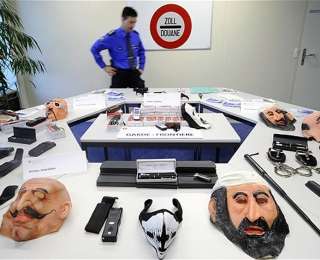 Нелегальное оружие давно находится во главе списка предметов, которые чаще всего конфискуют на таможне, но не все чемоданы могут похвастаться таким разнообразием масок. Этот набор был конфискован на швейцарской границе у группы французов. (AFP / Getty Images)