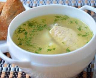 Курицу выньте на тарелку. Овощи нарежьте тоненькими кусочками и опустите в бульон. Варите до готовности. Посолите и поперчите суп.