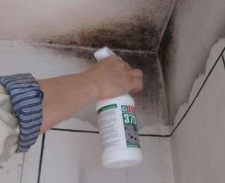 - Помести смесь в бутылку и нанеси раствор на заплесневевшую поверхность.