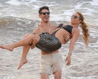 Мэрайя и Брайан страстно целовались, обнимались и держались за руки, выходя на берег. В какой-то момент молодой человек поднял возлюбленную на руки и покружил. Только это выглядело скорее комично, чем красиво — ведь Мэрайя не позаботилась о том, чтобы сбросить лишний вес перед тем, как предстать перед бойфрендом в купальнике. А что вы думаете о новом избраннике Кери и их романе?