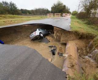 В Сан-Антонио, штат Техас, посреди дороги в результате обвала грунта образовалась яма со сточными водами глубиной около шести метров. В нее свалилось два автомобиля, в одном из которых была сотрудница местной полиции. Женщину спасти не удалось, а вот двух пассажиров второй машины все-таки вытащили и доставили в больницу.