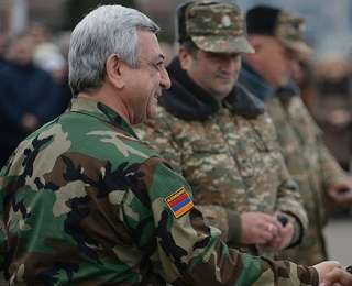 Президент Армении Серж Саргсян 11 декабря на площади Возрождения в Степанакерте премировал группу военнослужащих и ополченцев-азатамартиков Армии обороны НКР.