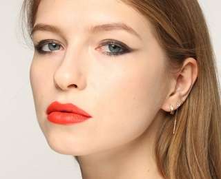 Какой макияж сделать на Новый год? Этот макияж с акцентом на губы смотрится очень эффектно! Выбери любой цвет темной помады — это может быть вишневый оттенок,модный винный, коричневый, рубиновый или ярко-красный. Для нашей модели мы выбрали теплый оттенок. Помни, что контур не должен быть слишком четким — наноси помаду стиком, без карандаша, а излишки убери ватной палочкой.