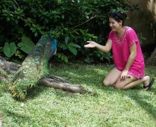 Эти фотографии были сделаны в Индонезии. Хорошо, что тетка решила пообщаться с павлином, а не крокодилом.