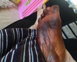 Выяснилось, что его жена по имени Стефани не могла найти свою рукавицу для нанесения искусственного загара и воспользовалась носком мужа.