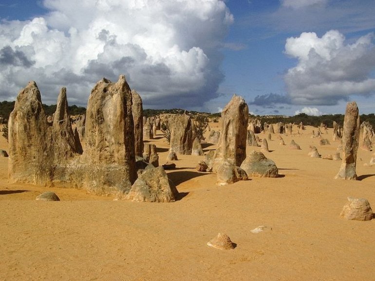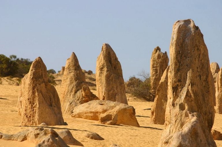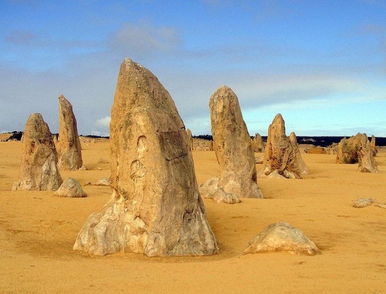 Расположенные недалеко от побережья юго-западной Австралии, тысячи столбов известняка повышаются прямо от движущихся желтых песков. В некоторых местах они достигают три с половиной метра высотой. Некоторые зазубрены с острым краем до самой вершины, в то время как другие напоминают надгробные плиты. Это — Пустыня Башен, часть Национального парка Намбунг примерно в 200 километрах к северу от Перта. Эти удивительные естественные структуры известняка были сформированы приблизительно 25,000 — 30,000 лет назад, после того, как море отступило и оставило колонии морских ракушек. В течение долгого времени прибрежные ветры удалили окружающий песок, оставляя столбы и башни в их нынешнем виде.