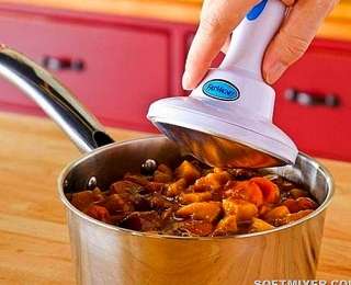 Данный гаджет работает по принципу льда, хранится в холодильнике и без труда собирает лишний жир из вашего блюда на свою холодную поверхность.
