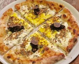 В одном из ресторанов Нью-Йорка, расположенном на Манхэттене, подают пиццу с черной икрой, трюфелями и съедобным золотыми хлопьями. Это удовольствие обойдется гурманам в 2000 долларов США или в 250 баксов за один из восьми кусочков.