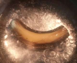 - Изначально, отрежьте края банана и положите его в кастрюлю с кипящей водой.