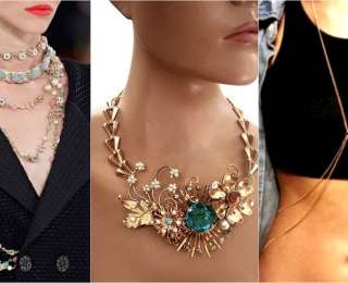 Шея и ключицы являются очень сексуальной частью тела. Поэтому к ним необходимо привлекать внимание и подчеркивать с помощью различных колье. Если в прошлом году модным взрывом были брутальные чокеры из кожи или бархата, то в этом году царит женственность. Если вы всё же выбрали чокер, то он должен быть многослойный или в богемном стиле.