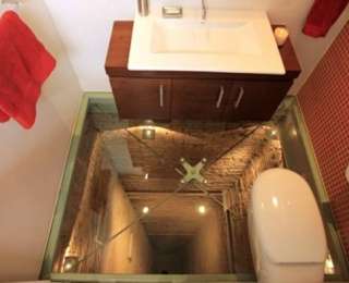Туалет со стеклянным полом и бездонной шахтой под ногами наверняка позволяет испытать полнейшее облегчение. Увы, но находится он в частном здании, потому только владельцы и их гости могут по достоинству оценить этот удивительный дизайн.