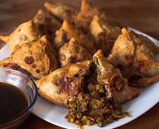 Индия, самоса. Хрустящие индийские пельмени их слоеного теста начиненные пряным картофелем и горохом, чечевицей, фаршем или луком.