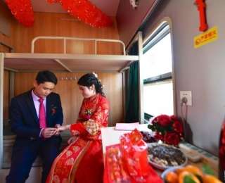 В День святого Валентина сотрудники китайской железнодорожной компании - Чжэн Хуан и Чэнь Дэн - отпраздновали свадьбу прямо на рабочем месте, то есть в вагонах и на перроне. Несмотря на то, что молодые люди ждали торжественного момента почти полгода, после росписи (во второй половине дня) они приступили к работе.