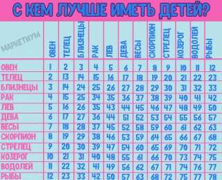 Это своеобразная родительская совместимость. Любопытно? Тогда найдите свой знак и знак партнера в таблице (не важно сбоку или сверху), а потом определите вашу цифру. Ниже прочитайте, что же все это значит!
