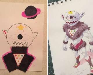 Французский художник Томас Ромен (Thomas Romain), который сейчас живет в Токио работал над различными аниме-мультфильмами известными во всём мире, но его лучшая работа это работа отца и художника по превращению рисунков своих сыновей в удивительных аниме-персонажей. Его дети, как и любые другие, любят рисовать, а их талантливый папа превращает их творения в настоящие шедевры. От инопланетян и киборгов до рыцарей и стимпанк-врачей — нет предела тому, на что отец и его сыновья способны, когда они занимаются творчеством вместе!