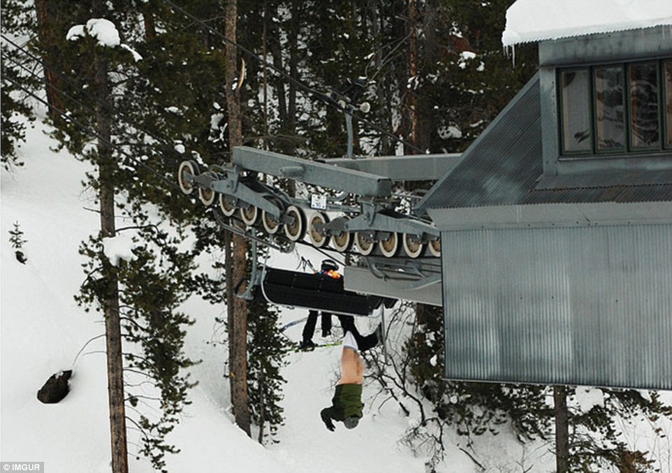 Лыжник потерял штаны, вылетев из подъемника, и висел так 10 минут, пока не подоспела помощь