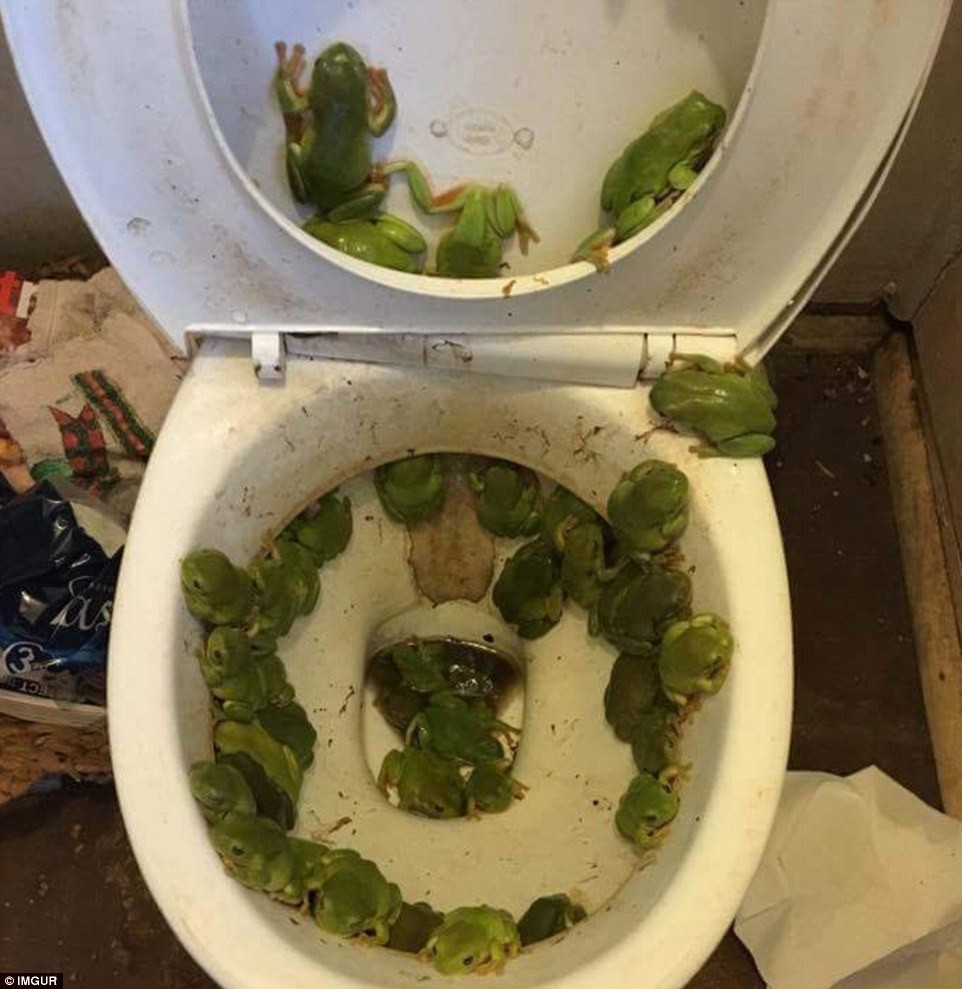 Этот пугающий снимок был сделан после наводнения, в результате которого лягушки нашли себе необычный дом