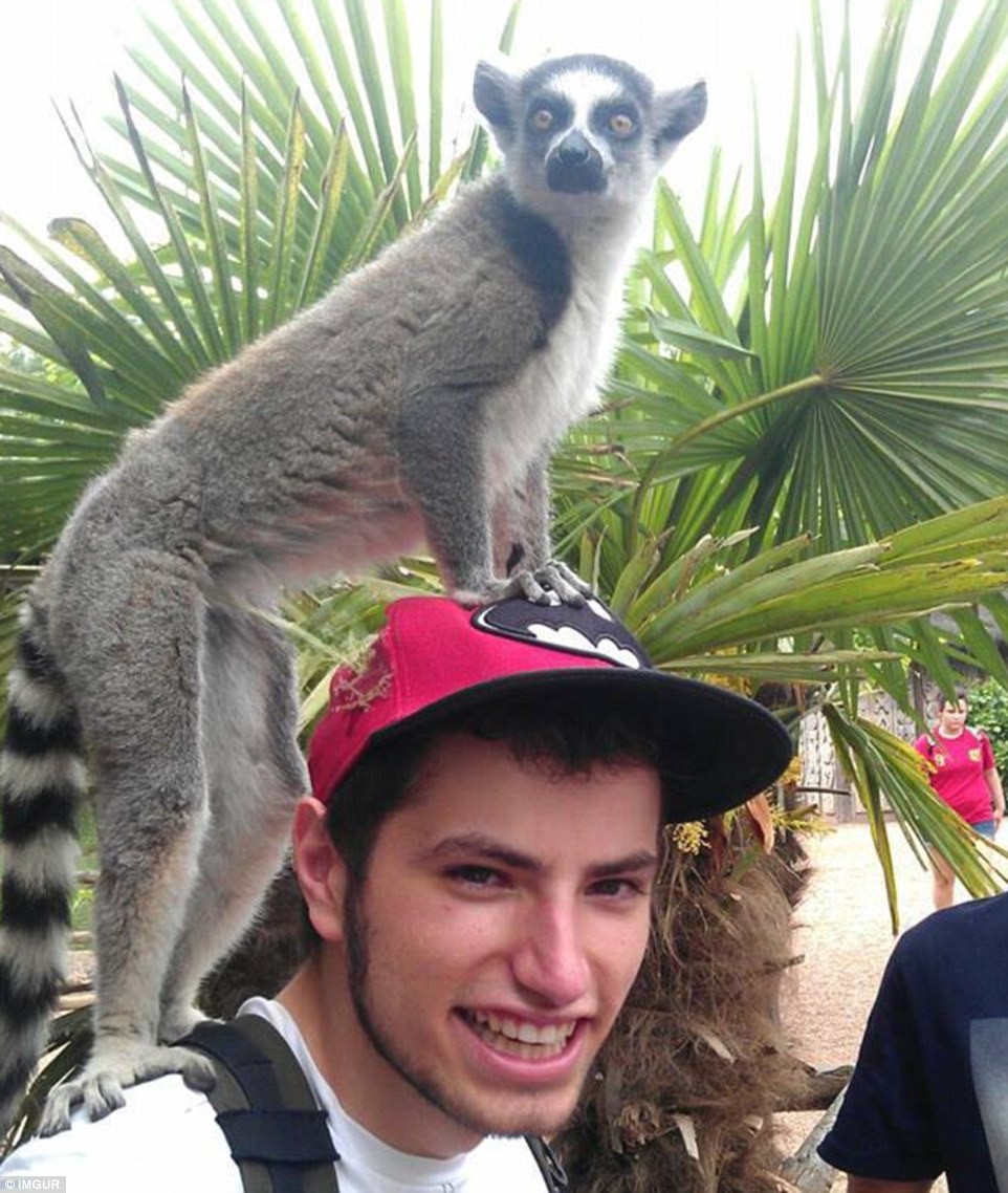 Перерыв на туалет: этот турист еще может не знать, но лемур просто использует его шапку Бэтмена в качестве писсуара