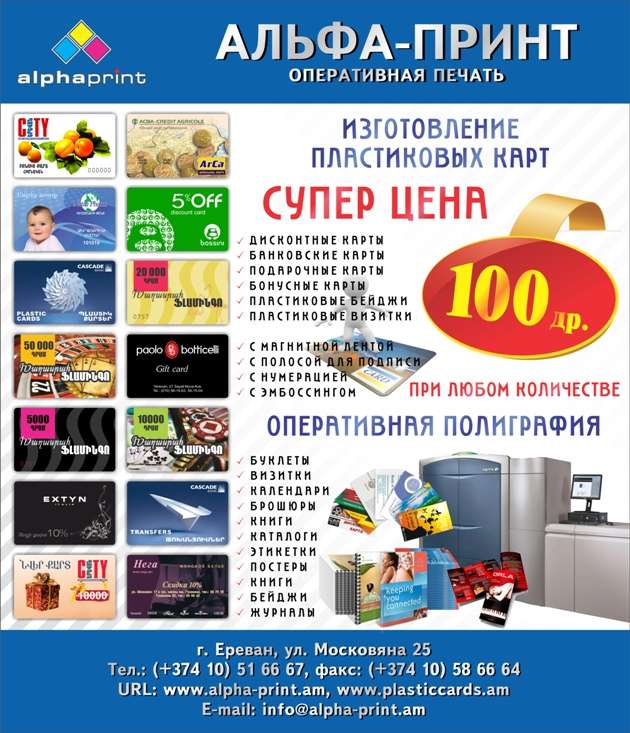 Cсылка оригинала: http://www.facebook.com/alphaprintcompany Мысли и позиции, опубликованные на сайте, являются собственностью авторов, и могут не совпадать с точкой зрения редакции BlogNews.am. print Распечатать
