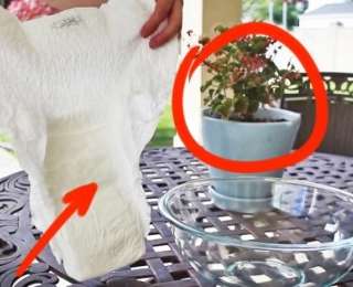 Многие даже не догадывались, что опытные садоводы нашли подгузники очень полезными в своем деле. Подгузники, уложенные на дно горшка или кашпо, прекрасно удерживают влагу. Так что теперь не стоит беспокоиться за любимые цветы, если ты редко бываешь на дачном участке.