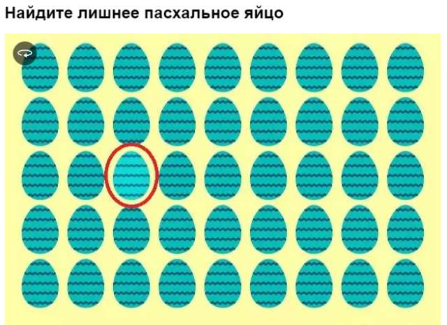 Мы предлагаем вам окунуться в пасхальную атмосферу, начав с легкого теста на внимательность! Просто посмотрите на картинку и отыщите лишнее яйцо. Чем быстрее вы справитесь, тем лучше можно оценить ваше умение концентрироваться. Вперед!