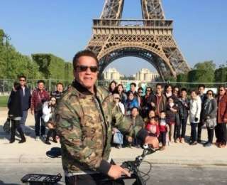 Актёр и экс-губернатор Калифорнии Арнольд Шварценеггер, катаясь на велосипеде по Парижу, "испортил" фотографию тайским туристам. Об этом сообщает BBC. Группа иностранцев позировала для снимка на фоне Эйфелевой башни в то время, как Железный Арни остановился перед ними. Он был в тёмных очках и камуфляжной куртке, так что туристы сначала его не узнали.