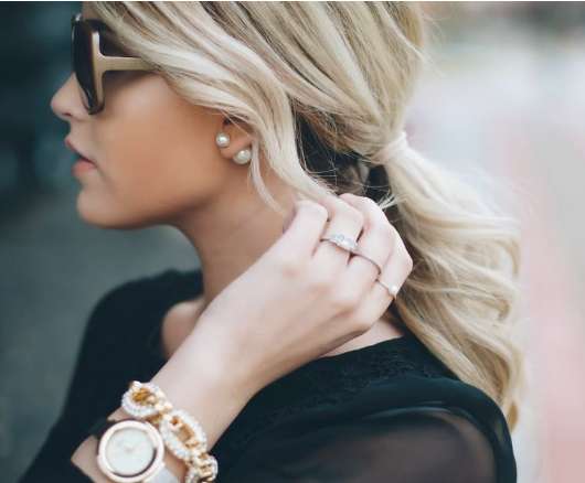 Откажись от крупной бижутерии со стеклянными камнями и стразами, а то рискуешь прослыть сорокой. Простые формы, минимализм и благородные металлы, — вот что сделает тебя элегантной.