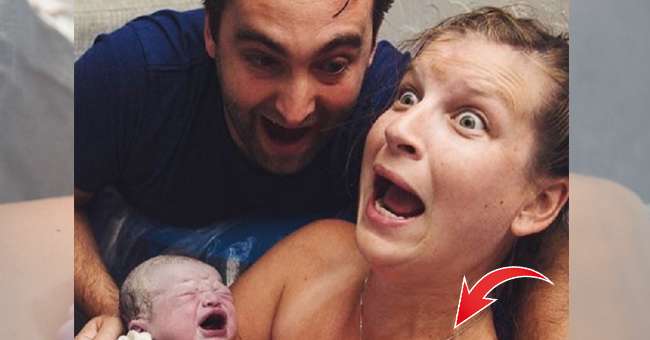 Наступил тот самый день. Ким рожала в воде. В тот момент, когда родители увидели малыша, и было сделано это эмоциональное фото.