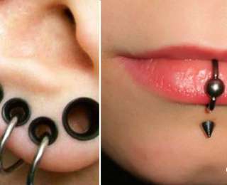 Губы: если неправильно сделать пирсинг, то могут возникнуть проблемы со слюноотделением. Кроме того, были зафиксированы случаи появления кисты в месте прокола губы.