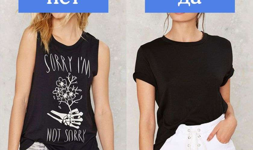 Пусть футболка с названием местной футбольной команды или музыкального фестиваля 2006 года останется твоей домашней одеждой или просто памятным сувениром — в качестве обычной одежды она будет смотреться как минимум странно.