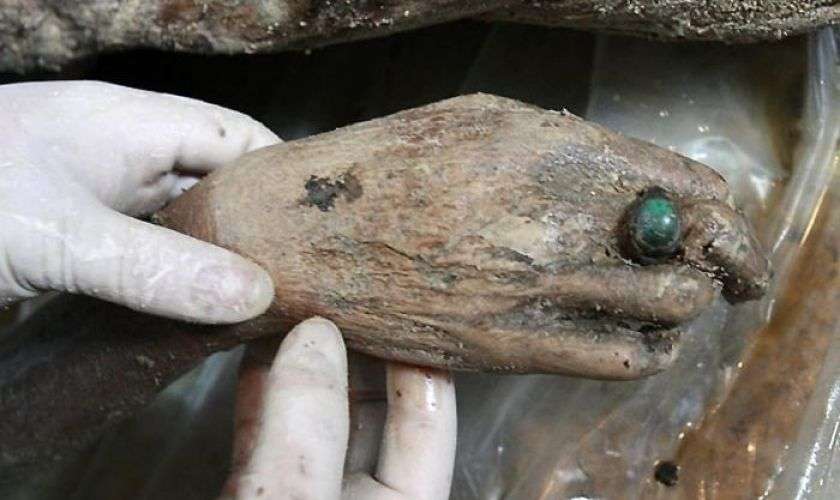 Вскрыв два гроба, специалисты обнаружили там останки древней одежды, погребальные принадлежности и пару человеческих скелетов. Однако самый крупный сюрприз ожидал историков в третьем гробу. Подняв его крышку, люди ахнули!