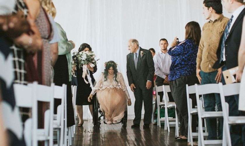 Согласись, самая трогательная часть на любой свадьбе — момент, когда невеста подходит в сопровождении отца к алтарю. В эти секунды обычно плачут даже самые стойкие сухари. Особенно волнительным этот момент становится, если невеста выезжает к гостям на инвалидном кресле…