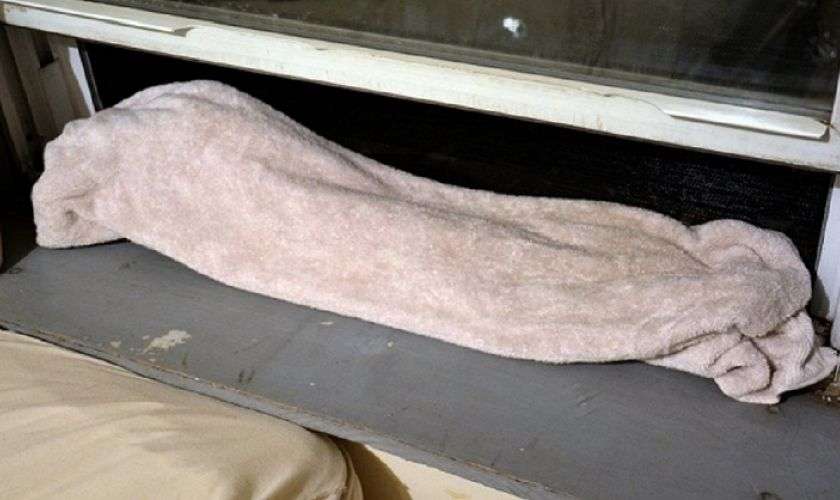 - Также ночью от духоты может спасти обычное махровое полотенце. Для этого необходимо намочить бельевое изделие холодной водой и поместить его на подоконник у открытого окна. Вот и всё — самодельный кондиционер готов!