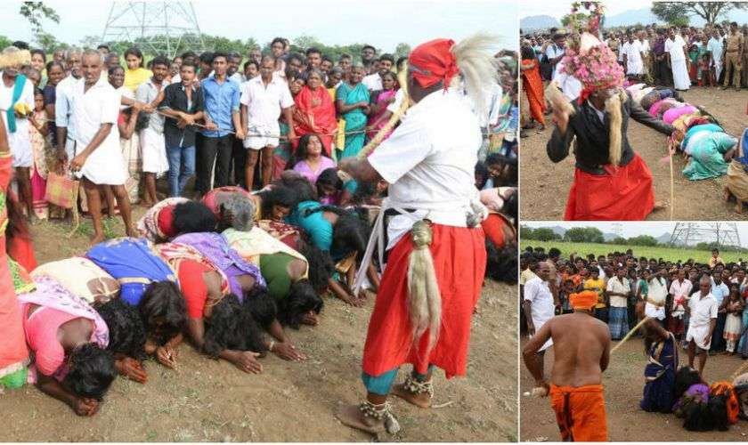 Около 2000 индийских женщин и девочек простояли пять часов в очереди в храм Шри-Ачаппана в Бавитраме, штат Тамил-Наду, чтобы получить удары хлыстом по спине от священника. Традиция существует уже много веков. Женщины верят, что эта процедура помогает избавиться от злых духов, а также исцеляет физические и умственные недуги.