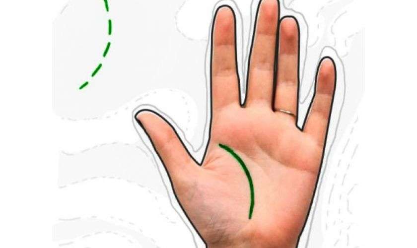 Линия начинается у основания ладони рядом с запястьем и простирается в направлении среднего пальца.