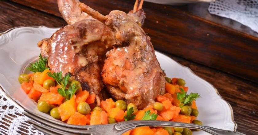 Сделать из воды и уксуса маринад, положить в него разделанного, зачищенного от пленок кролика. Оставить мясо в маринаде на 2 часа.
