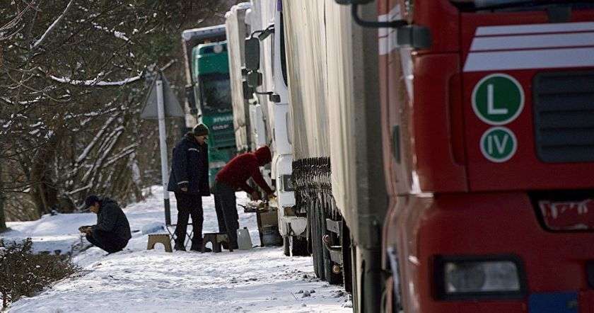Движение по трассе Степанцминда-Ларс закрыто для грузовиков из-за сильных снегопадов.