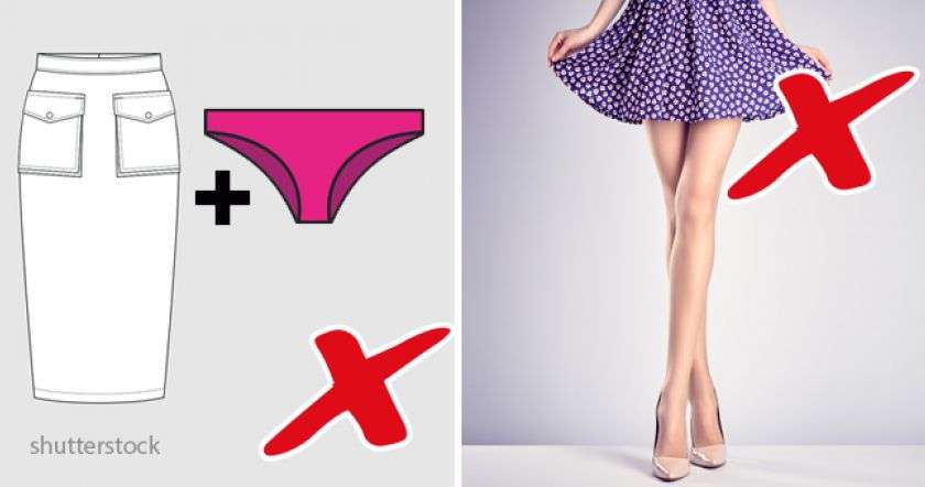 Самые частые ошибки — это белье с резинками, которые выделяются, и цветные трусики, которые просвечивают сквозь ткань. Выглядит это очень некрасиво и привлекает лишнее внимание. Правильным будет надеть бесшовное нижнее белье телесного цвета, так вы точно не ошибетесь.