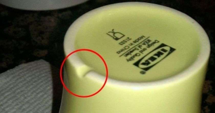 Нидерландский бренд со шведскими корнями сейчас производит кружки в огромном количестве. И эта кухонная посуда может удивить своей формой. Всё дело в том, что чашки от ИКЕА имеют канавки на дне, создающие видимость выщербленной посуды.