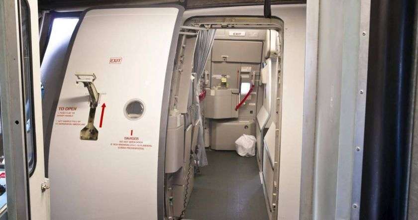 Если бы дверь по какой-то причине открылась в воздухе, салон был бы разгерметизирован через 0,5 секунд, и все, что не закреплено, немедленно вылетело бы из него из-за разницы в давлении.