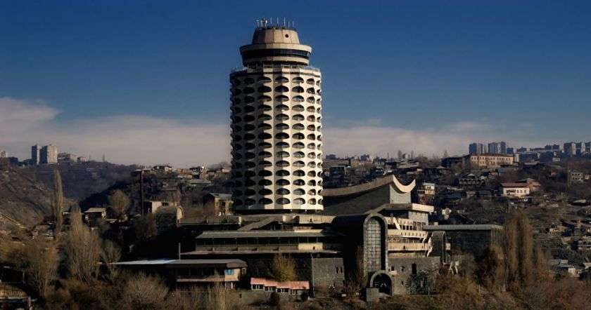 Правда, начиналось все еще в 1960-ых годах. Тогда архитекторам Грачу Погосяну, Артуру Тарханяну и Спартаку Хачикяну было поручено спроектировать здание Дворца молодежи в Ереване. Строгой советской комиссии представленный вариант сначала не очень пришелся по душе – мол, слишком сильны "западные модернистские влияния". На самом деле все было иначе, и акцент был поставлен на национальных мотивах, особенно во внутренней отделке.