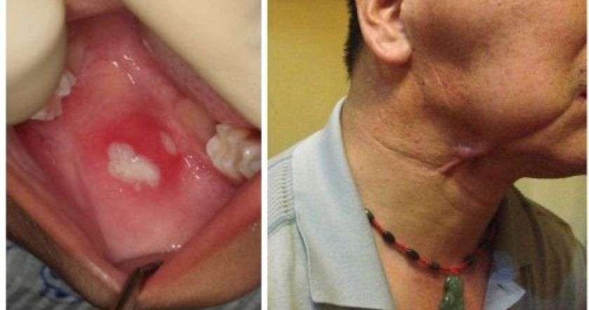 Есть несколько симптомов рака полости рта, которые можно испытать. Постоянные болячки на шее, ротовой полости или лице, которые легко кровоточат и не заживают в течение двух недель, изменили образ ваших зубов или протезов, бархатистые белые, красные или белые и красные пятна внутри рта, и необъяснимая боль, чувствительность, онемение или потеря чувства в любом месте во рту, шее или лице — все это симптомы рака полости рта.