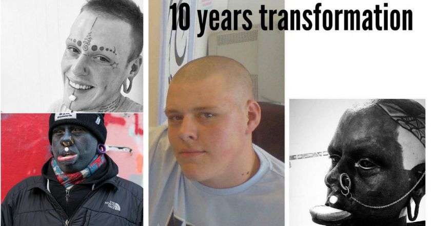 27-летний Eli Ink из Брайтона за 10 лет изменился до неузнаваемости. Он использовал несколько слоев черной краски, чтобы навсегда очернить свою кожу. Помимо этого он проделал тоннели в носу и ушах, сделал татуаж глазных яблок и вставил диск в нижнюю губу. Несмотря на такую экзотическую внешность, он утверждает, что татуировки не помешали ему найти свою любовь. Его подруга Холли, тоже поклонница различных модификаций тела, безумно влюблена в черного парня.