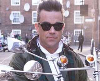 Робби Уильямс в четверг в Лондоне во время съемок нового музыального клипа на песню "Goin Crazy".