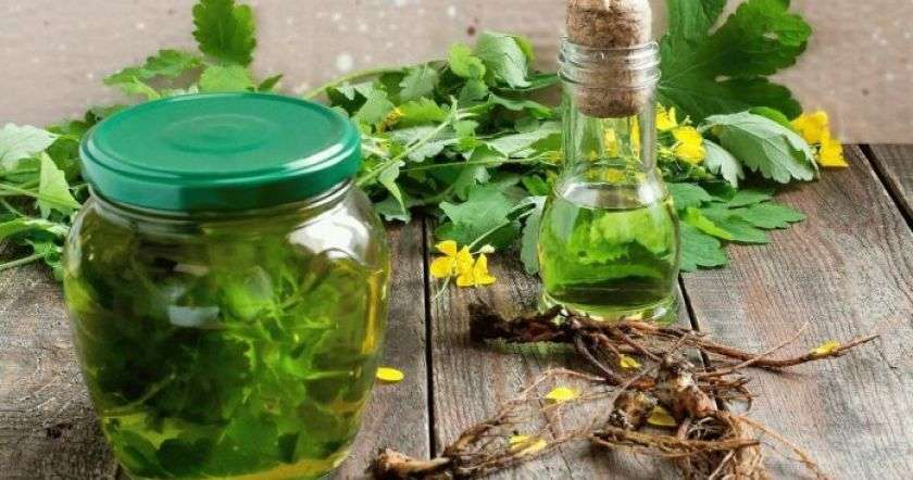 При брюшной водянке и одышке 3 ст. ложки травы чистотела заливают стаканом водки, плотно закрывают пробкой, настаивают в темном месте 6 дней, сырье отжимают, процеживают настойку, переливают в бутылку с плотной пробкой. Принимают по 1/4 стакана 4 раза в день за 10 минут до еды.