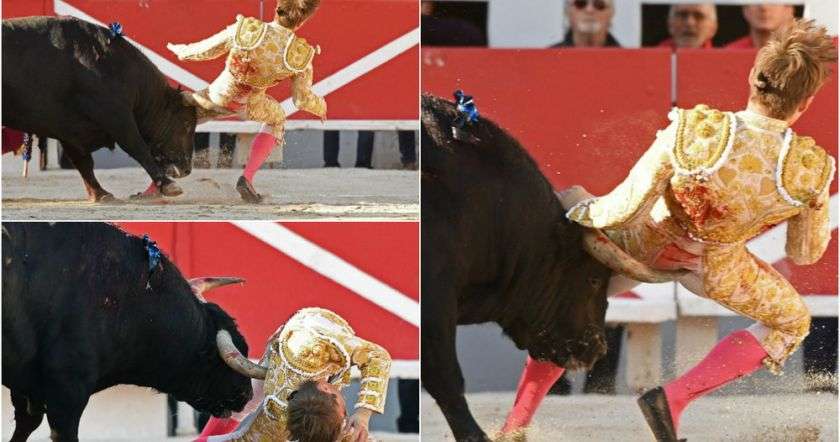 Шокирующий случай произошел в городе Арль на юге Франции во время корриды. Драматические фотографии запечатлели момент, когда 20-летний тореадор Энди Юнес был атакован быком.