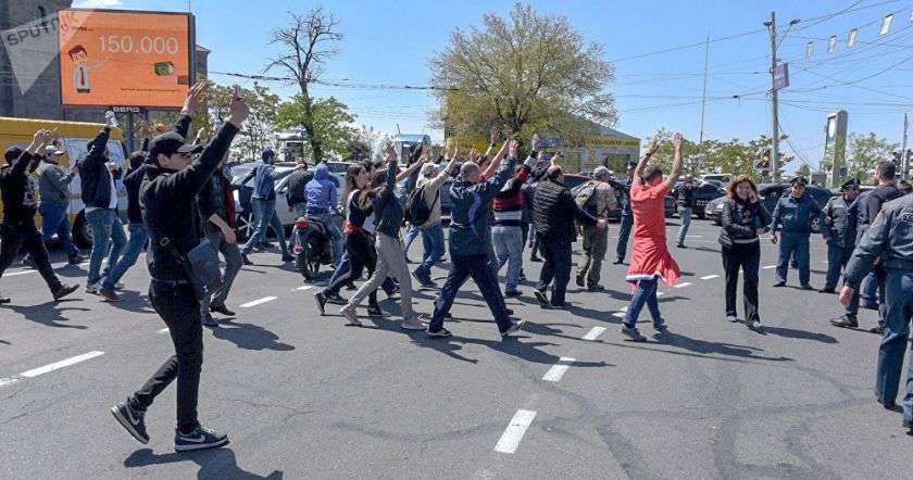 Затем митингующие вышли на улицы Еревана, заблокировав движение в центре города.